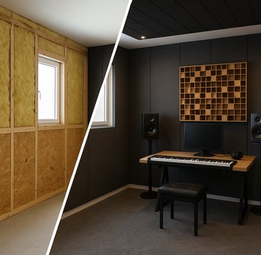 Qui trovi alcuni esempi di ambienti che ho trasformato: home studio, sale prova, studi di registrazione e spazi per l’ascolto.