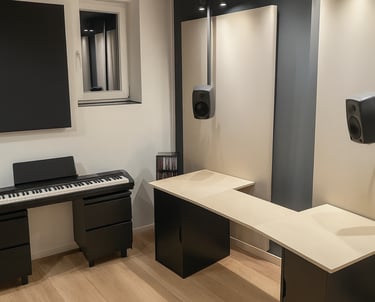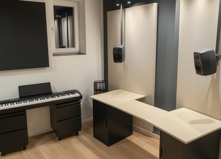 Progetto e realizzo ambienti trattati per home studio, studi di registrazione, sale prova, booth vocali e home cinema.